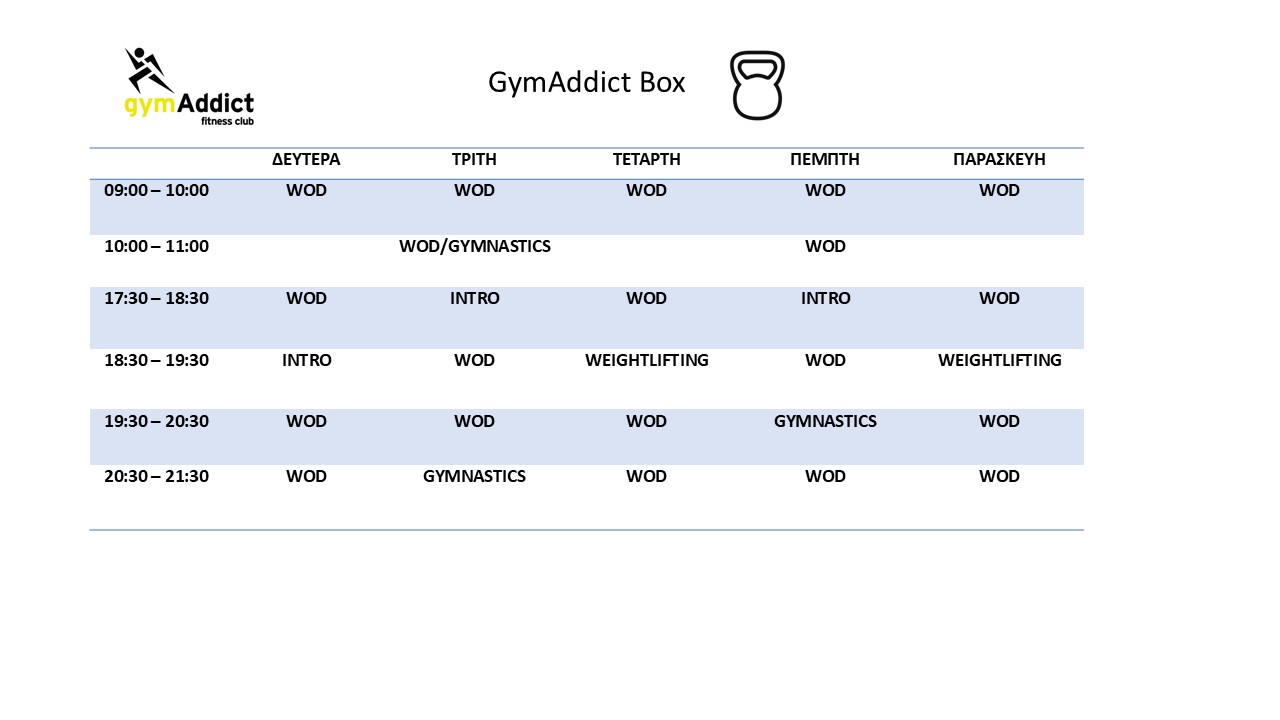 OPEN GYM – Ο χρόνος σου, ο ρυθμός σου Στο Open Gym, τα μέλη της συγκεκριμένης υπηρεσίας έχουν τη δυνατότητα να χρησιμοποιήσουν τον χώρο ελεύθερα για προσωπική προπόνηση. Ιδανική επιλογή για όσους θέλουν να ακολουθήσουν το δικό τους πρόγραμμα, αξιοποιώντας τον εξοπλισμό του Box.
